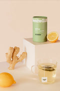 Thé vert Sencha, gingembre, citronnelle, écorces de citron, arômes naturels de citron, citron vert et gingembre.